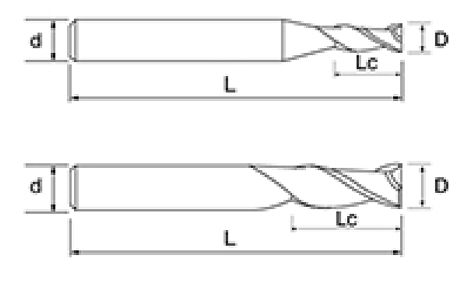 | NNL Carbide End Mills pro Aluminium Machining | D0.5~D3.5 | 0 -0.012 | R0.5~R1.75 | /-0.005 | CR0.2~CR0.5 | /-0.005 | 0 0.3 | 0 0.5 | 0 0.5 | h6* |