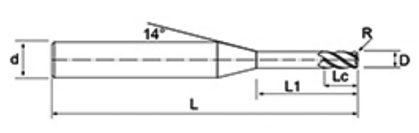 | NNX Carbide finem Mills ad Copper Electrode | D0.1~D0.9 | 0 -0.005 | R0.05~R2 | /-0.005 | CR0.05~CR0.5 | /-0.005 | 0 0.3 | 0 0.3 | 0.5 -0.5 | h5 |