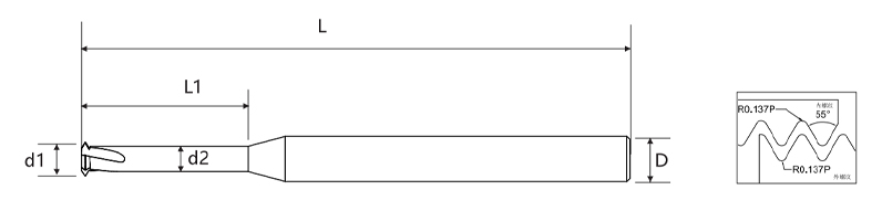 The 55° BSP/BSPT Singulus Tooth Thread Milling Cutter nominatim destinatur ad machinis stamina Britannica Standard Pipe (BSP/BSPT) occurrens vexillum 55° angulum sequelae. Unius dente secans consilium altam praecisionem efficit machinationem uno tempore secando, efficaciter resistentiam minuendo. Quo magis idoneus est ad praecisionem fabricandam et parvam massam fabricandam.